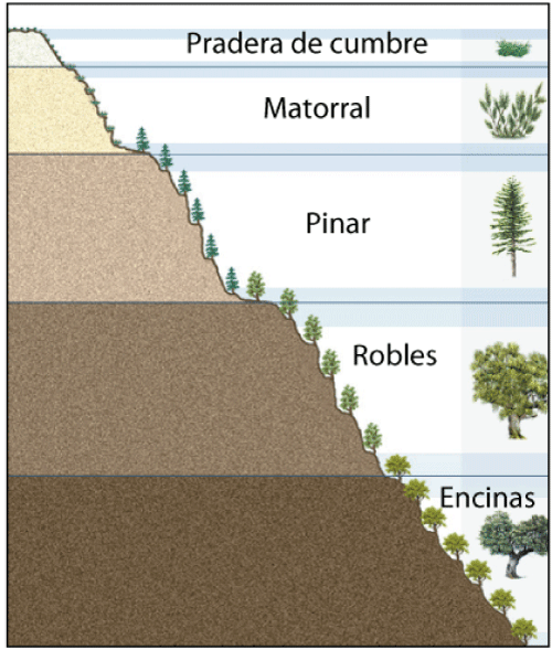 Algo que no podemos olvidar, es que el tipo de bosque que podemos encontrar, dependerá mucho de la altura y de la climatología del terreno. Ciertas especies como algunos tipos de coníferas (Pinos), se adaptan a las condiciones más extremas. Otras como las encinas están muy condicionadas por las temperaturas, por tanto limitadas en la altura.